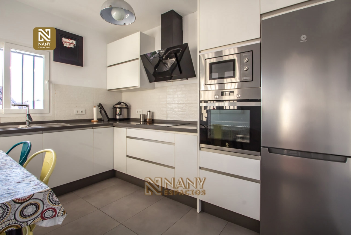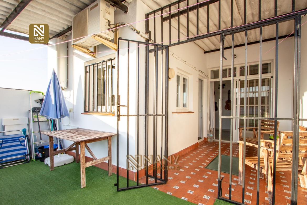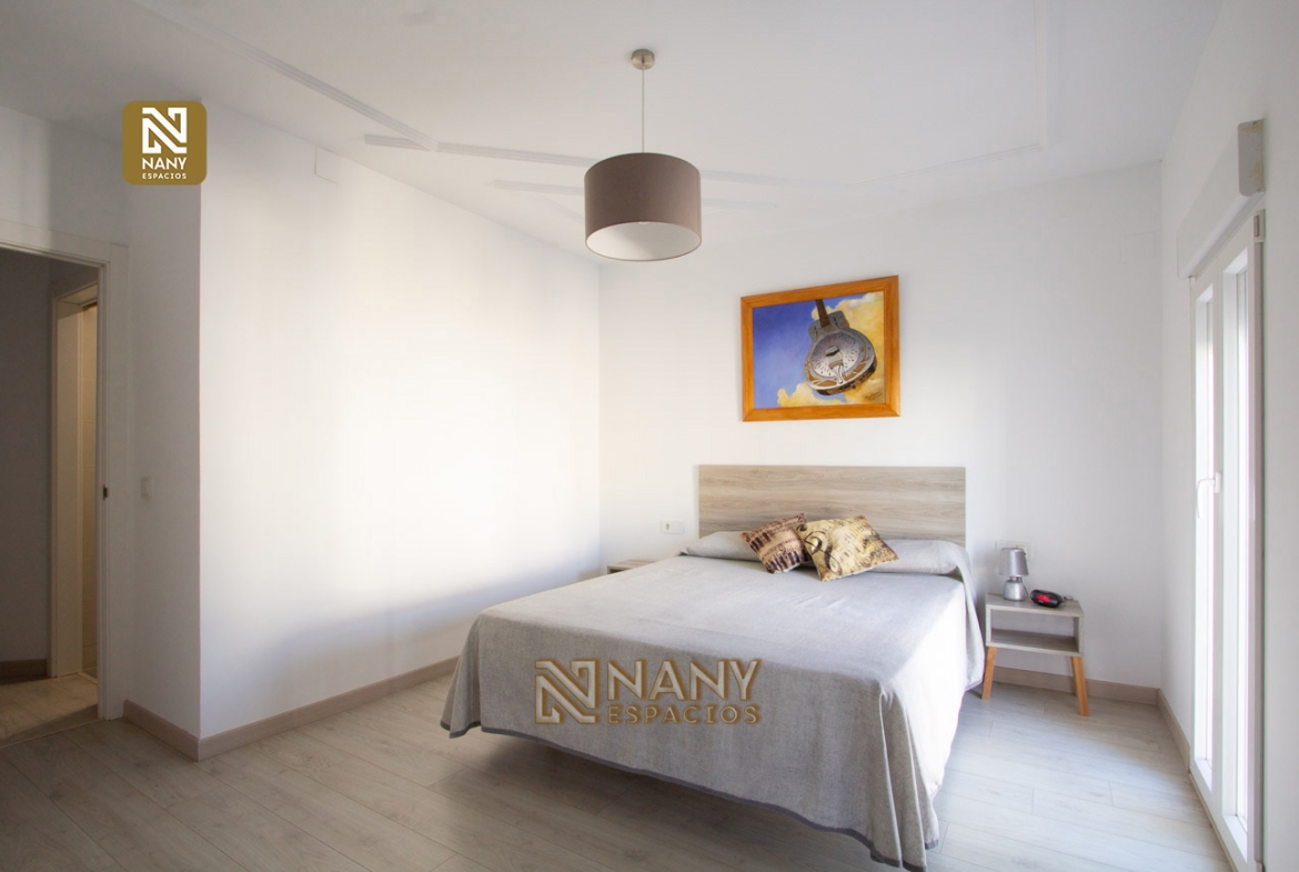 DESCRIPCIÓN: APARTAMENTO totalmente REFORMADO en 1ª planta sin ascensor de 103 m² construidos. Esta vivienda se encuentra en la planta alta de una casa en donde se distribuyen, 2 amplias habitaciones, salón – comedor, baño, cocina amueblada y equipada, terraza y nave – trastero.